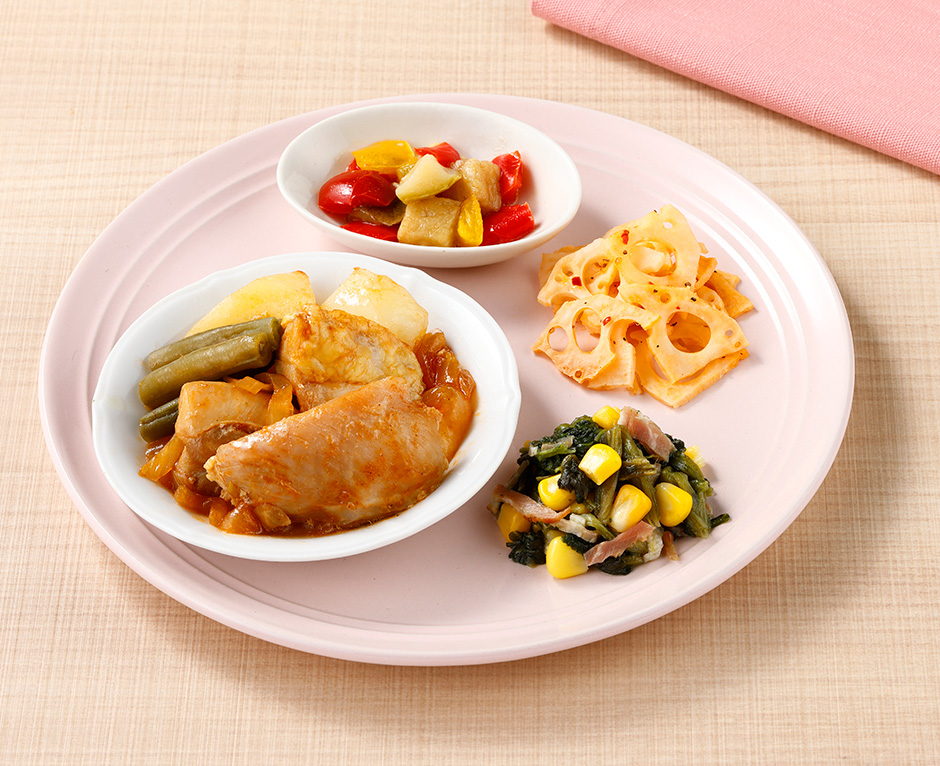 商品開発に向き合い続けて10年、一品一品丁寧に開発いたしました。 ご利用者の満足度向上を第一に、ひじきの炒り煮など定番の家庭料理を 献立へ組み込み、普段の味わいをそのままに“おいしい”に寄り添います。