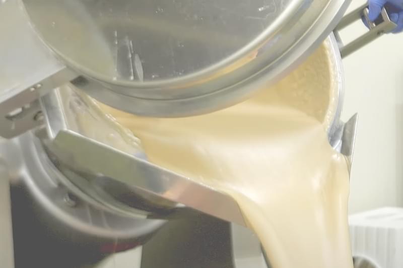 食材を高性能ミキサーにかけるうえ、 加水量を最小にして食材比率アップ。