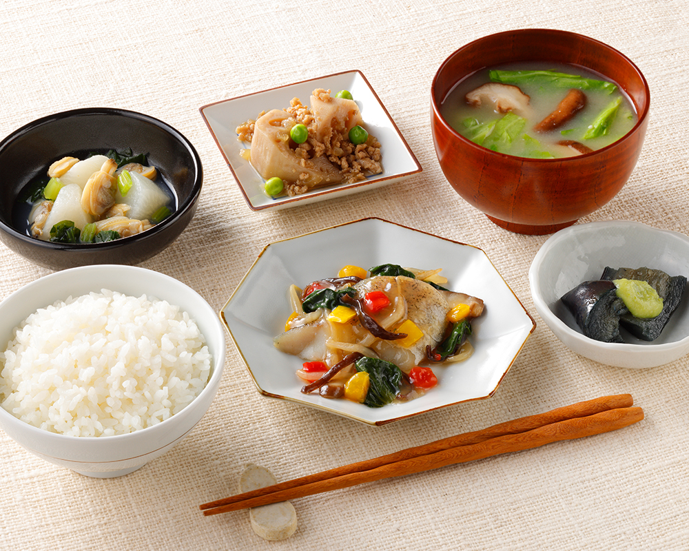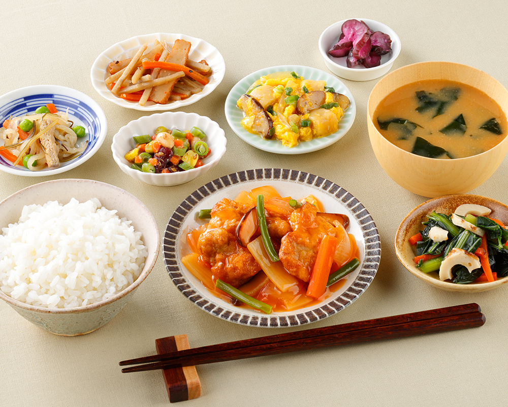 毎日の献立は、エネルギー、塩分、品目数、お野菜量など栄養バランスに配慮し設計されています。