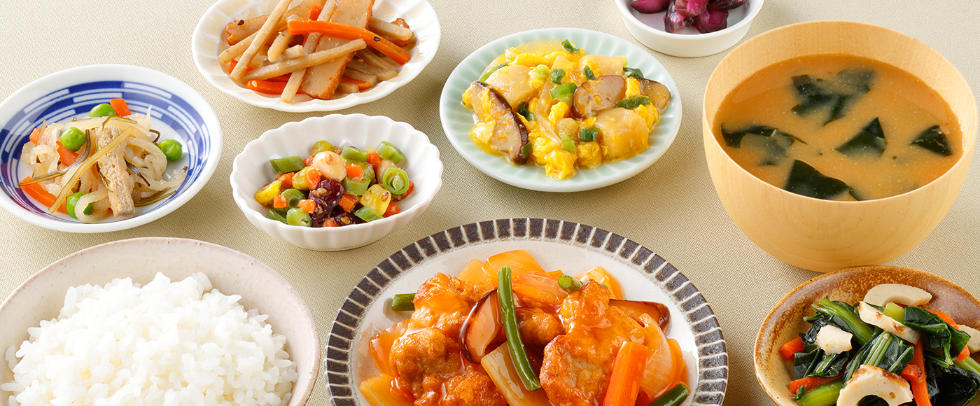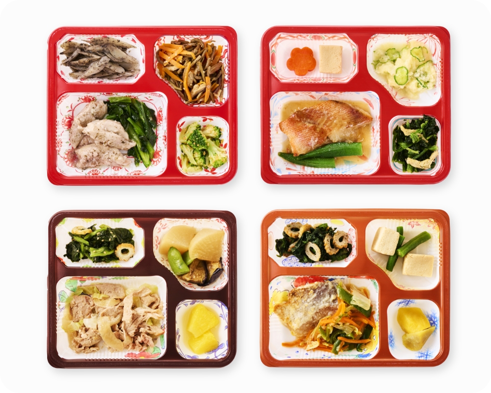 お客様の声を活かした人気メニュー約3,000種類以上から、 季節に合わせた日替わりの献立をお届けします。